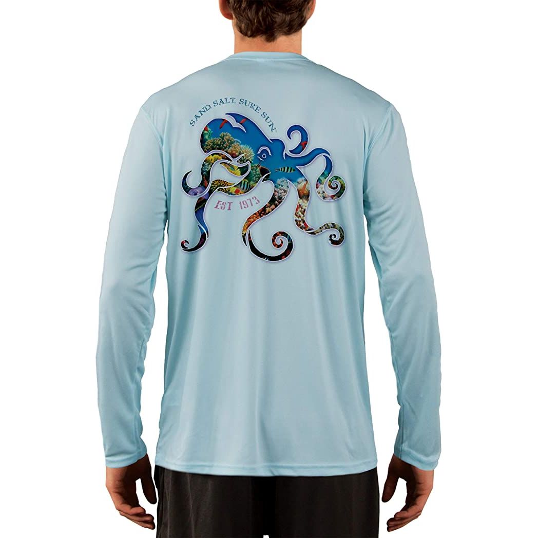 SAND.SALT.SURF.SUN. Coral Octopus Men's UPF 50+ UV Sun Protection Performance Long Sleeve T-Shirt
