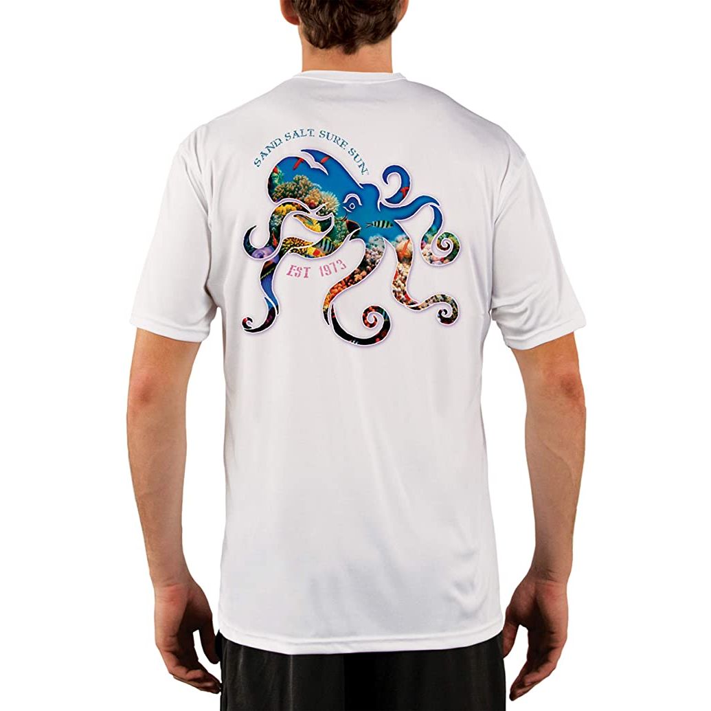 SAND.SALT.SURF.SUN. Coral Octopus Men's UPF 50+ UV Sun Protection Performance Short Sleeve T-Shirt