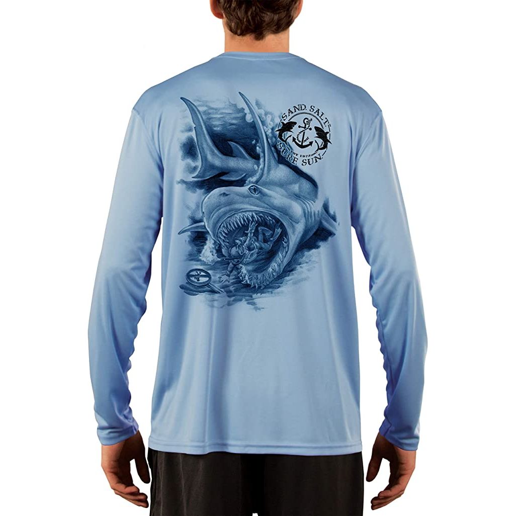 SAND.SALT.SURF.SUN. Shark Diver Attack Men's UPF 50+ UV Sun Protection Performance Long Sleeve T-Shirt