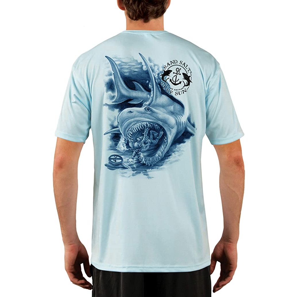 SAND.SALT.SURF.SUN. Shark Diver Attack Men's UPF 50+ UV Sun Protection Performance Short Sleeve T-Shirt