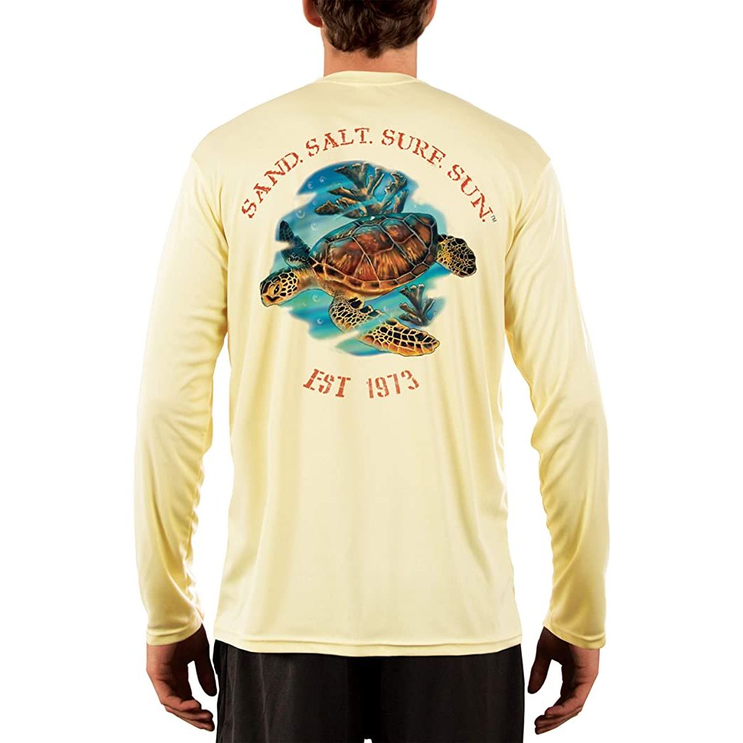 SAND.SALT.SURF.SUN. Sea Turtle Men's UPF 50+ UV Sun Protection Performance Long Sleeve T-Shirt