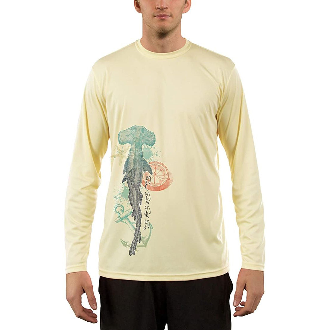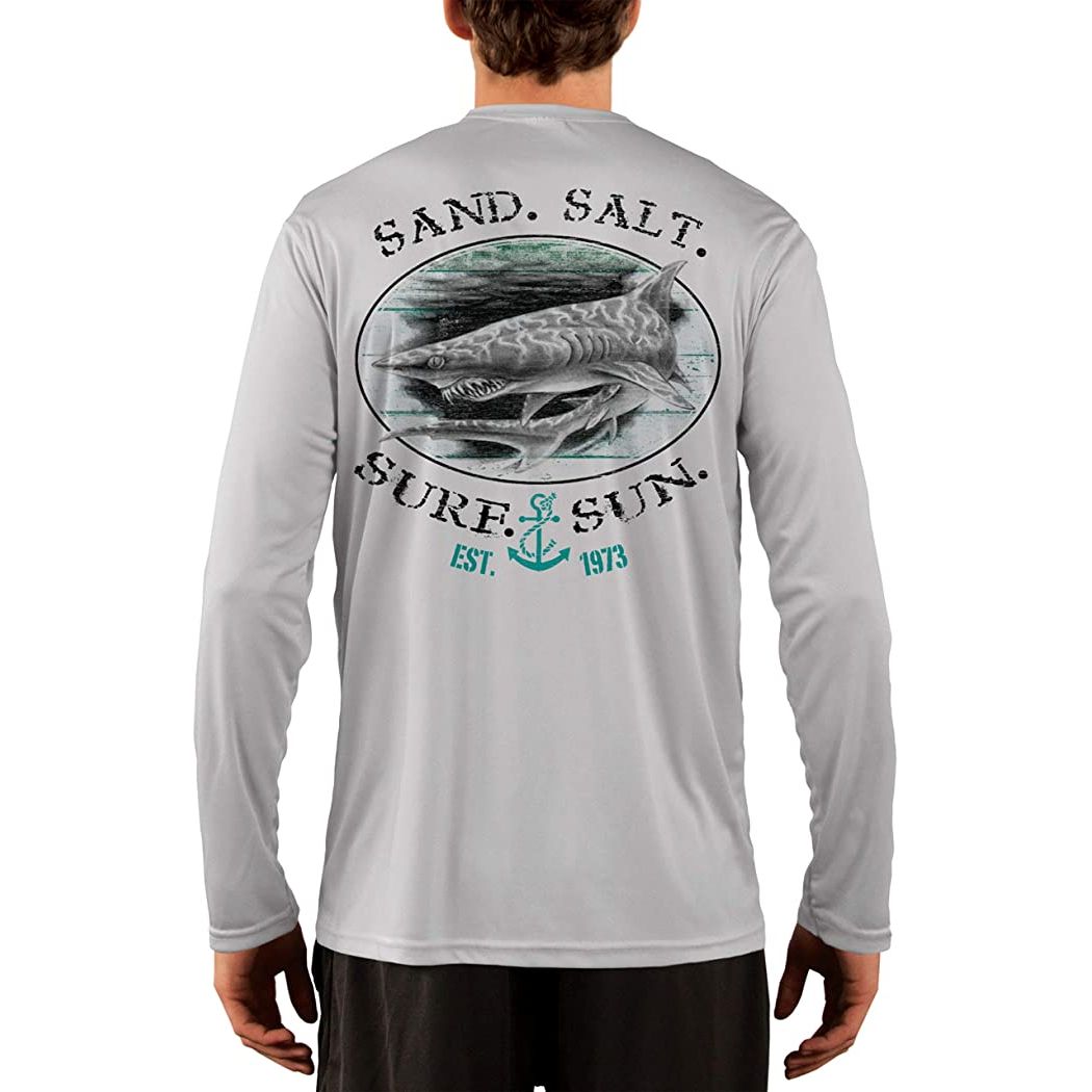 SAND.SALT.SURF.SUN. Shark Men's UPF 50+ UV Sun Protection Performance Long Sleeve T-Shirt