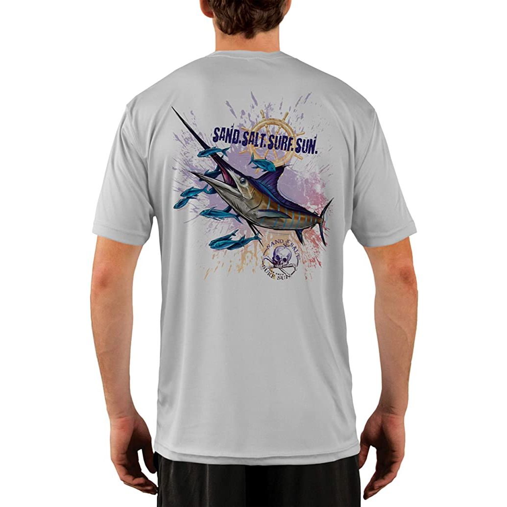 SAND.SALT.SURF.SUN. Blue Marlin Men's UPF 50+ UV Sun Protection Performance Short Sleeve T-Shirt