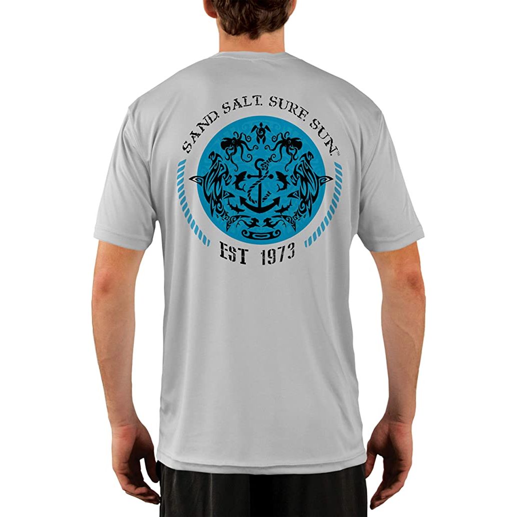 SAND.SALT.SURF.SUN. Shark and Anchor Tribal Men's UPF 50+ UV Sun Protection Performance Short Sleeve T-Shirt