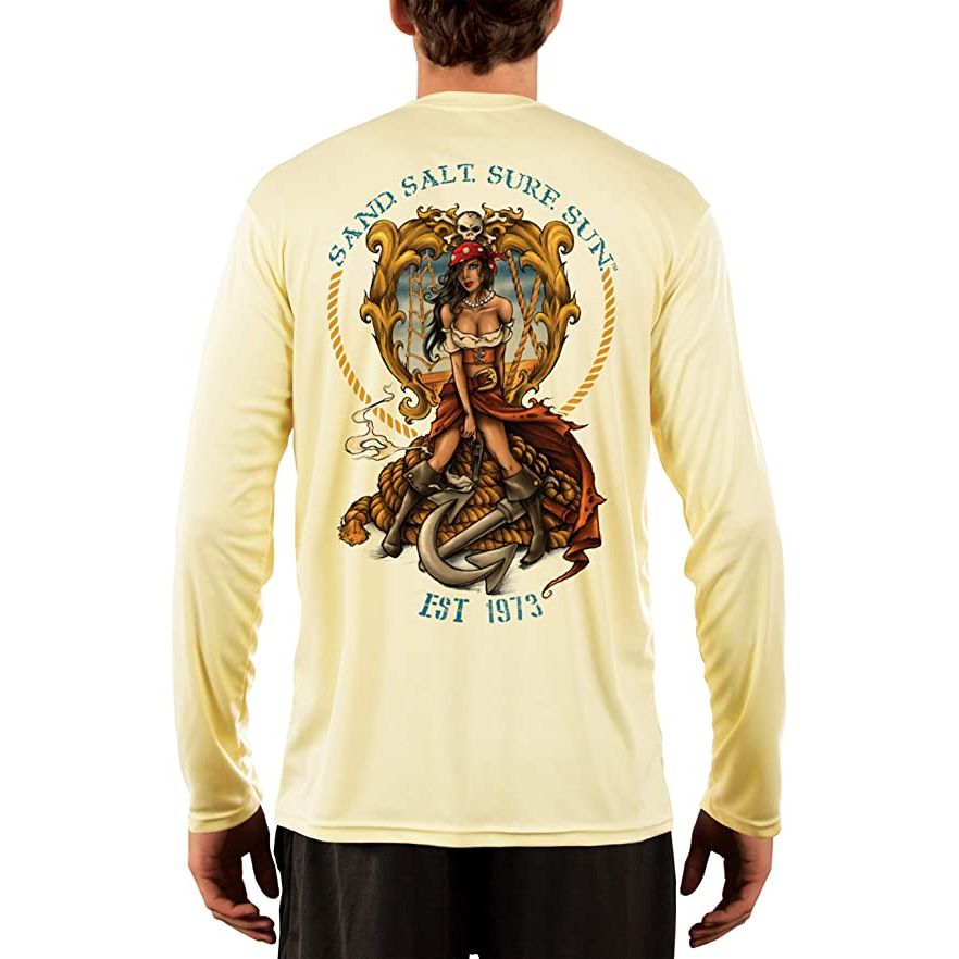SAND.SALT.SURF.SUN. Pirate Girl Anchor Men's UPF 50+ UV Sun Protection Performance Long Sleeve T-Shirt