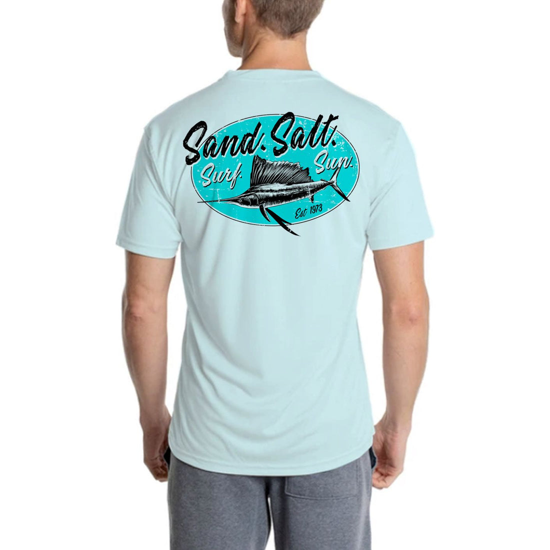 SAND.SALT.SURF.SUN. Marlin Logo Men's UPF 50+ UV Sun Protection Performance Short Sleeve T-Shirt