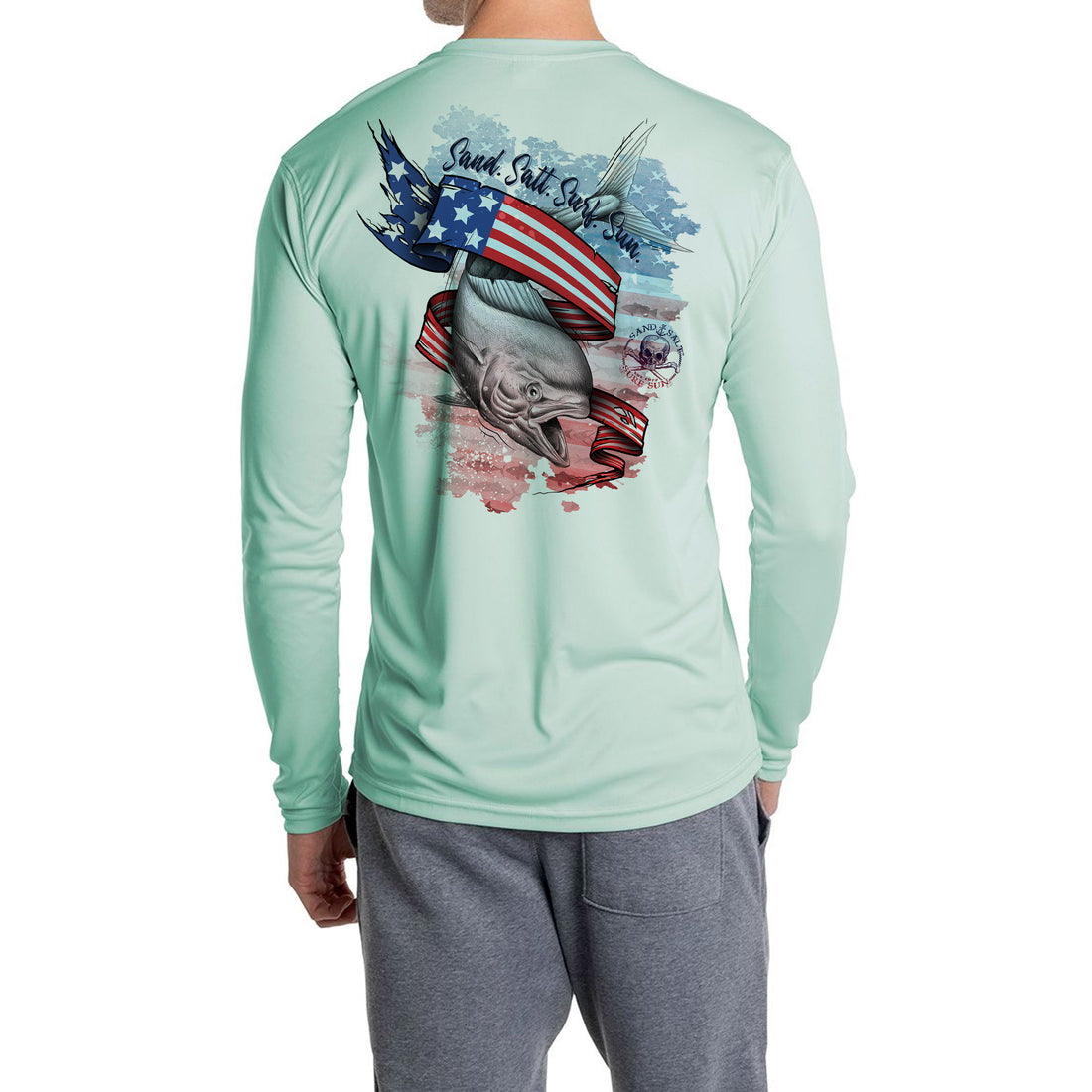 SAND.SALT.SURF.SUN. Flag Marlin Men's UPF 50+ UV Sun Protection Performance Long Sleeve T-Shirt