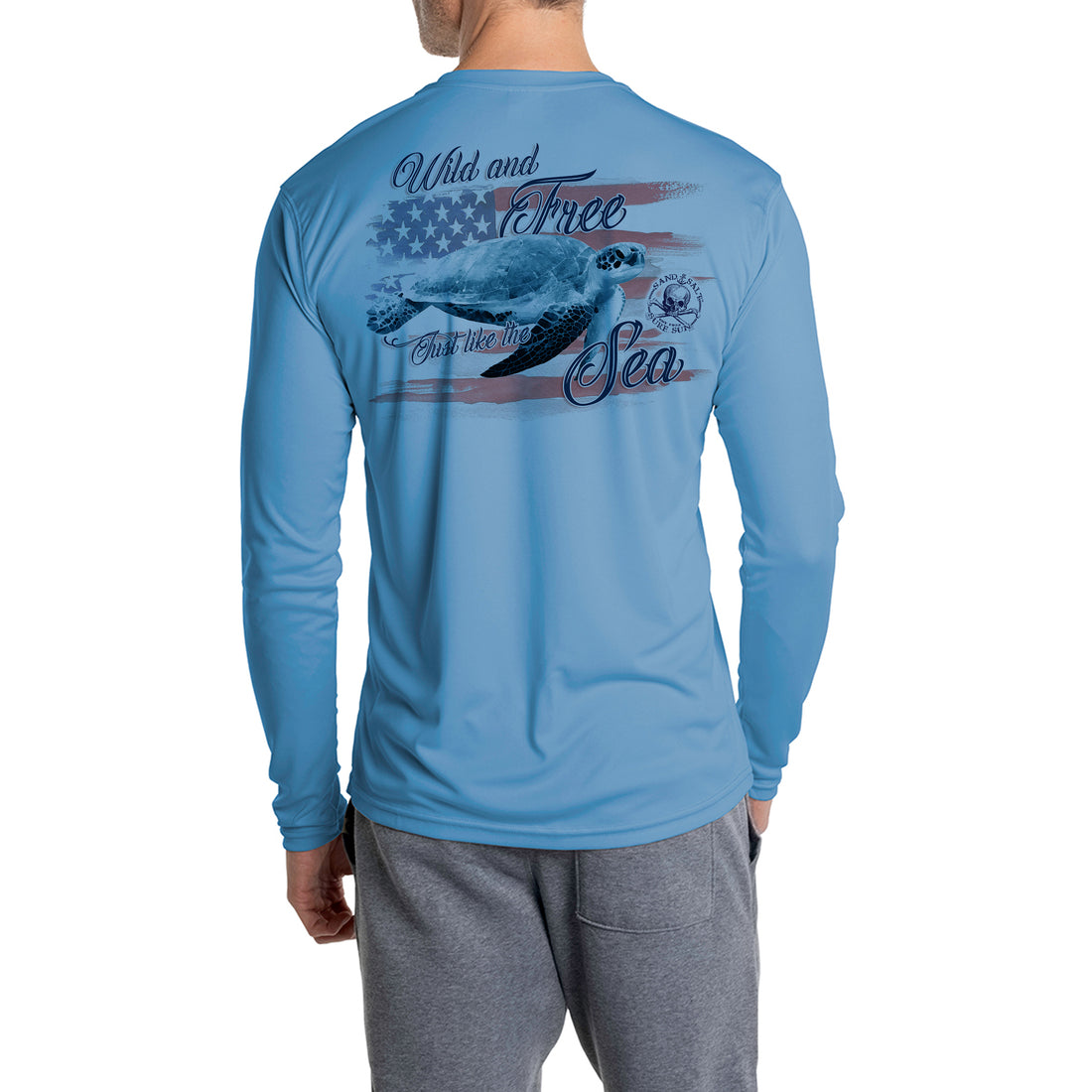 SAND.SALT.SURF.SUN. Flag Turtle Men's UPF 50+ UV Sun Protection Performance Long Sleeve T-Shirt