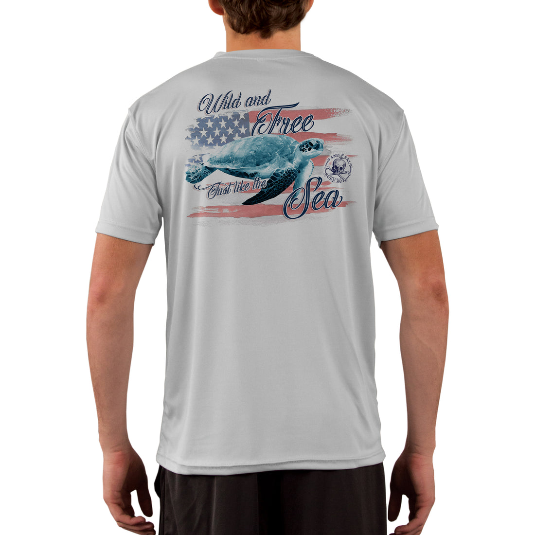 SAND.SALT.SURF.SUN. Flag Turtle Men's UPF 50+ UV Sun Protection Performance Short Sleeve T-Shirt