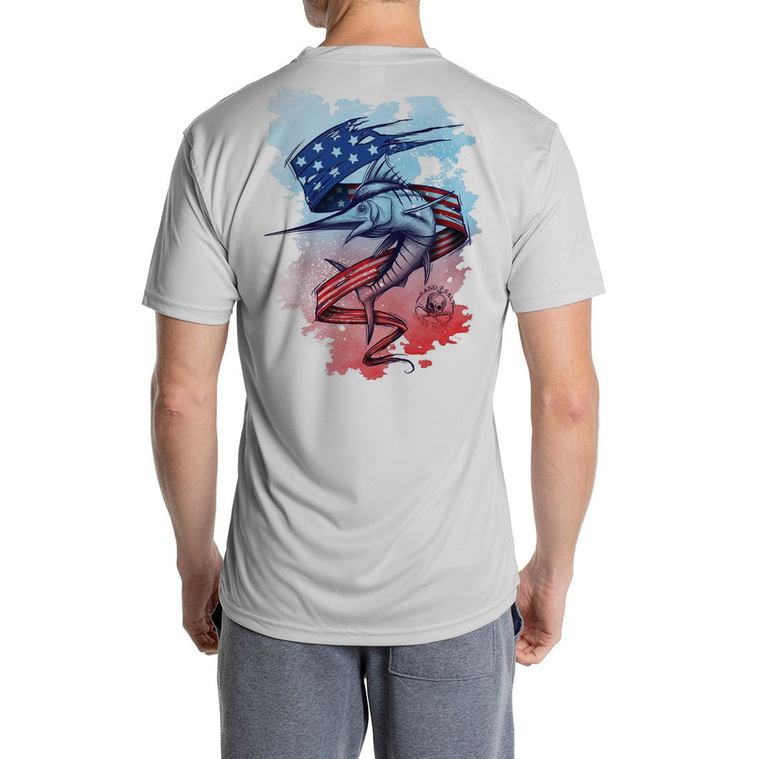 SAND.SALT.SURF.SUN. Marlin Flag Men's UPF 50+ UV Sun Protection Performance Short Sleeve T-Shirt