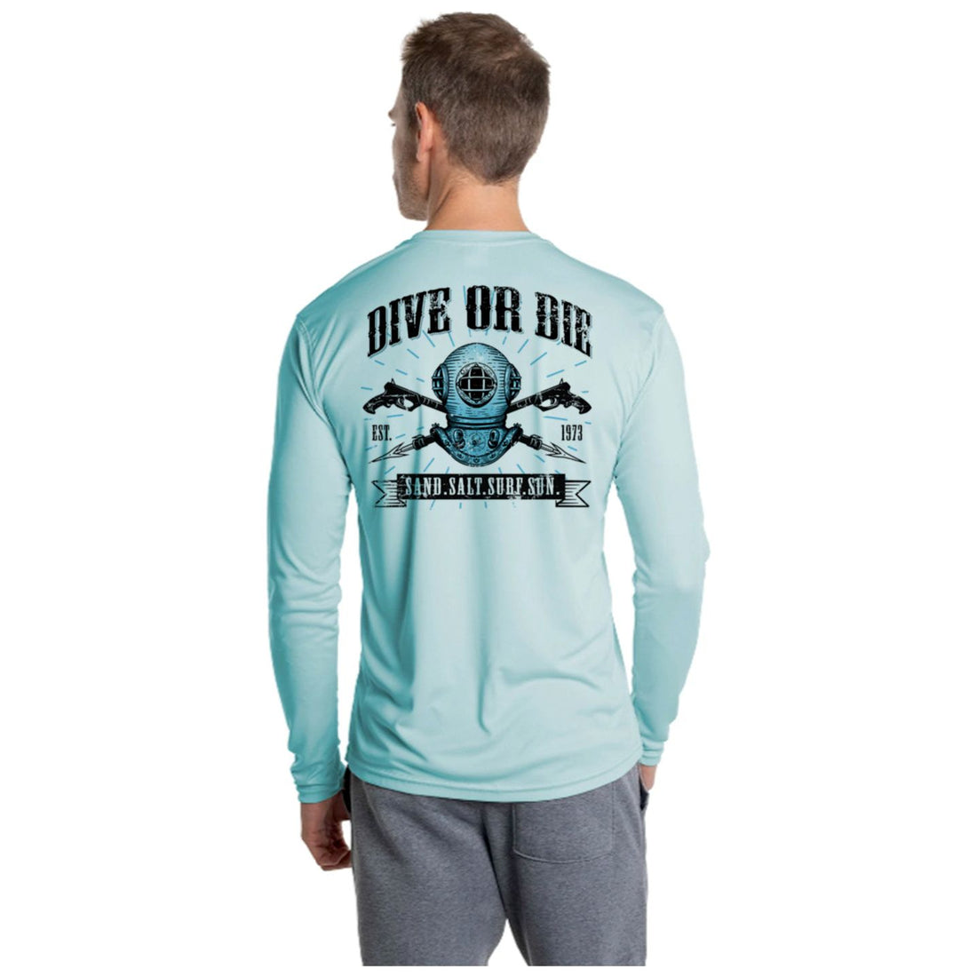 SAND.SALT.SURF.SUN. Dive or Die Men's UPF 50+ UV Sun Protection Performance Long Sleeve T-Shirt