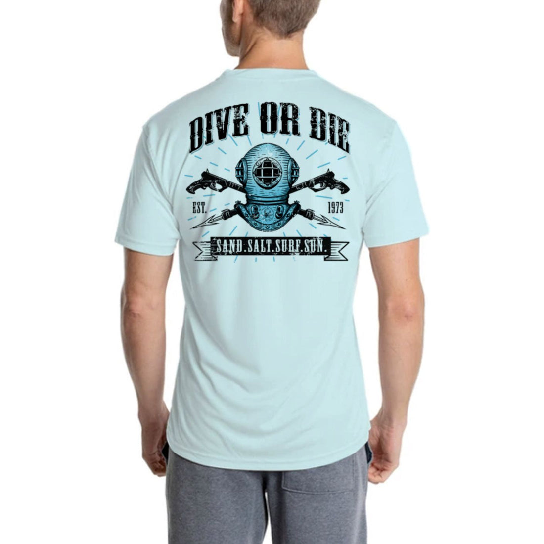 SAND.SALT.SURF.SUN. Dive or Die Men's UPF 50+ UV Sun Protection Performance Short Sleeve T-Shirt