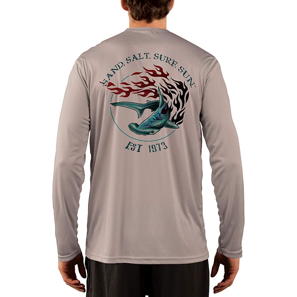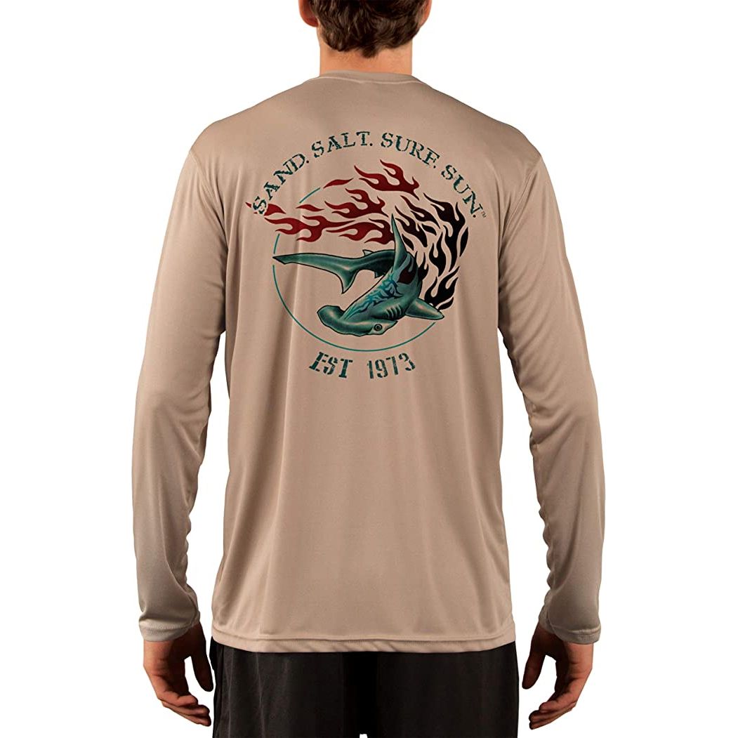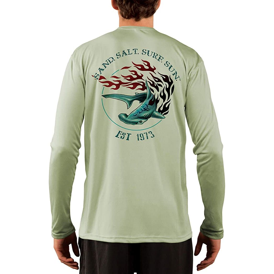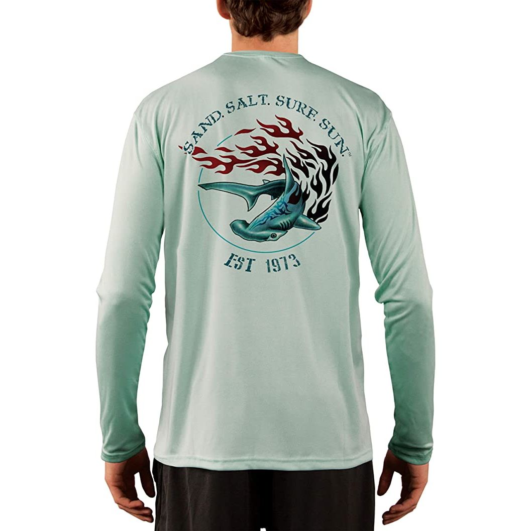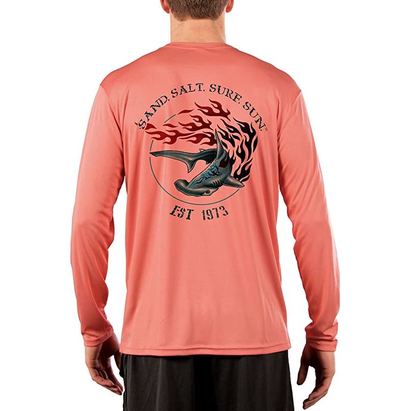 SAND.SALT.SURF.SUN. Flaming Shark Men's UPF 50+ UV Sun Protection Performance Long Sleeve T-Shirt